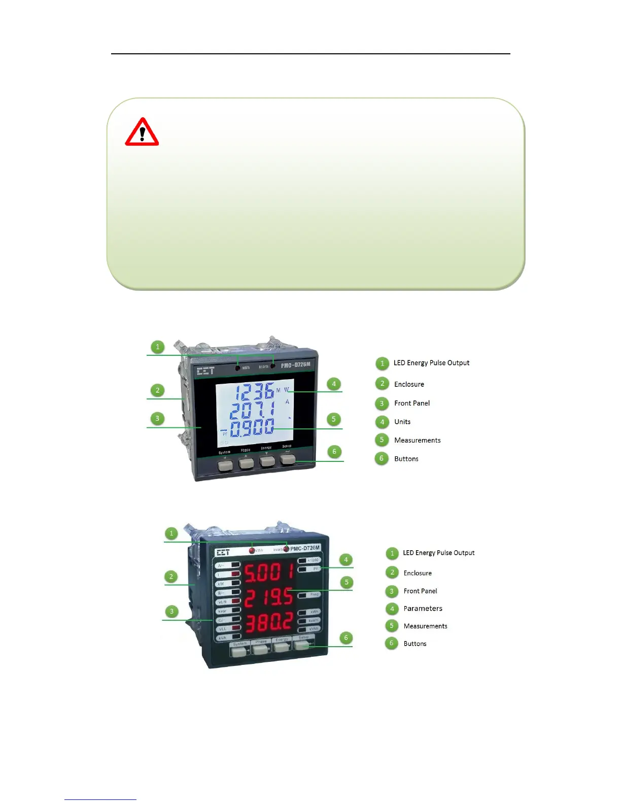 During the operation of the meter, hazardous voltages are present at the input terminals.