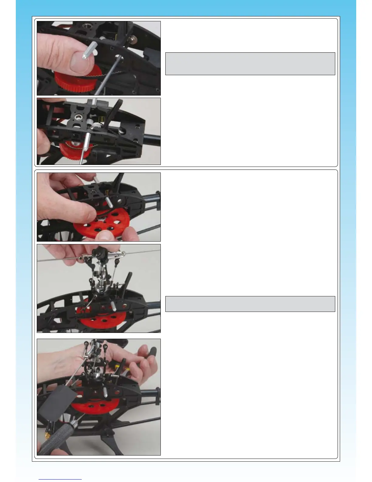 IMPORTANT Ensure the long arm on the rear of the swashplate aligns