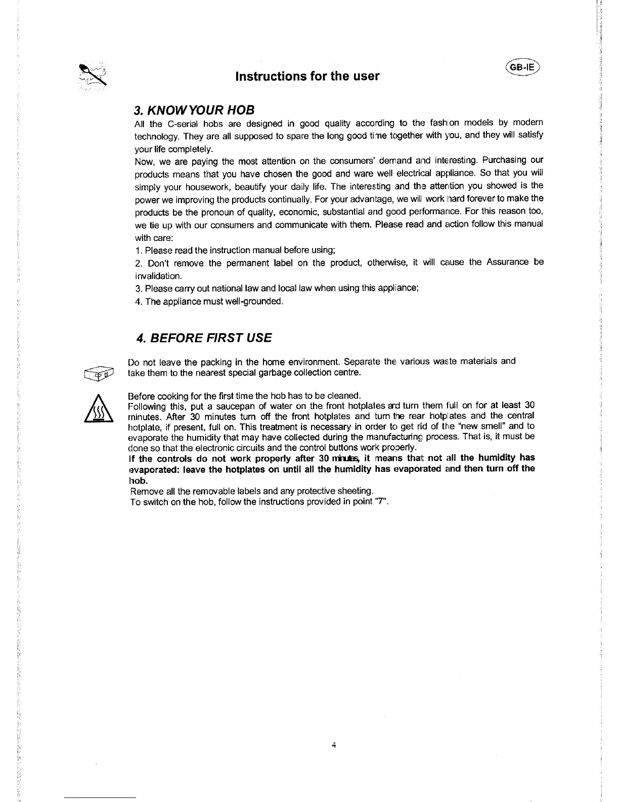 EF HB-AV230-A - Know Your Hob; Before First Use