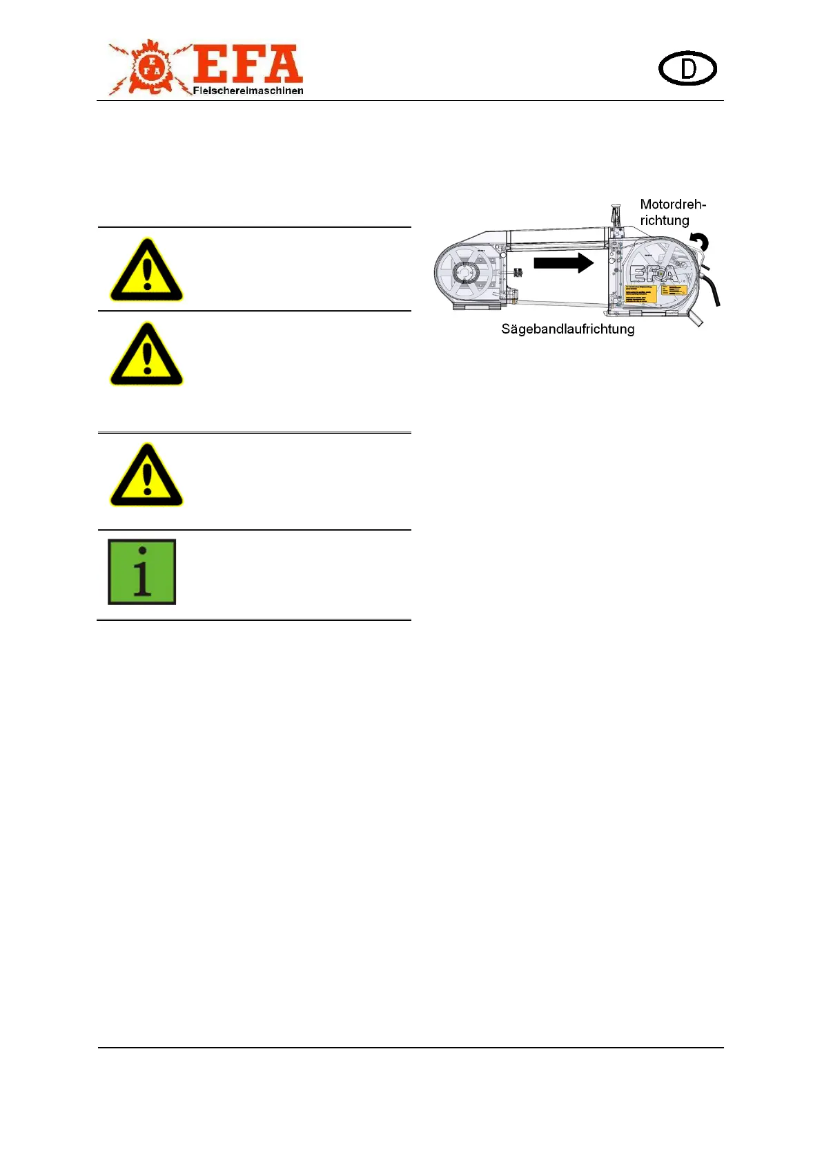 Abb. 1 Dreh- & Laufrichtung Sägeband/ Motor