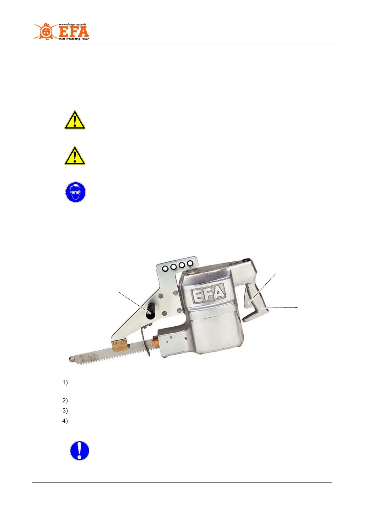 The EFA pneumatically operated breastbone saw must not be switched on before the operator has read these