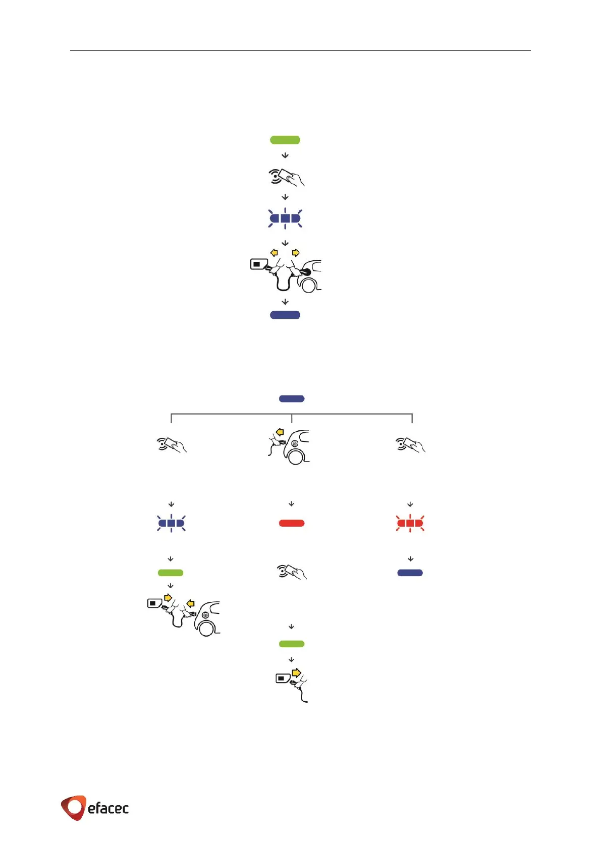 The green light stands for a charging station ready to charge. In the following figure is represented the sequence