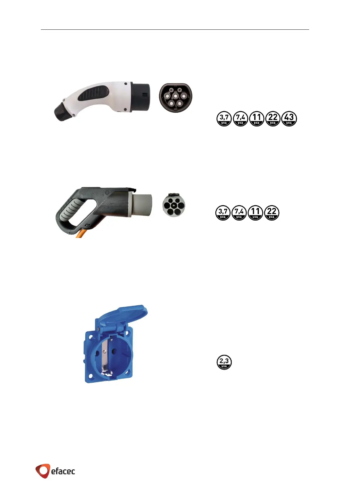 efacec EFAPOWER EV PC G2 - 7.1.3 TYPE 2 CONNECTOR; 7.1.4 TYPE GB CONNECTOR; 7.1.5 CE;7 OUTLET