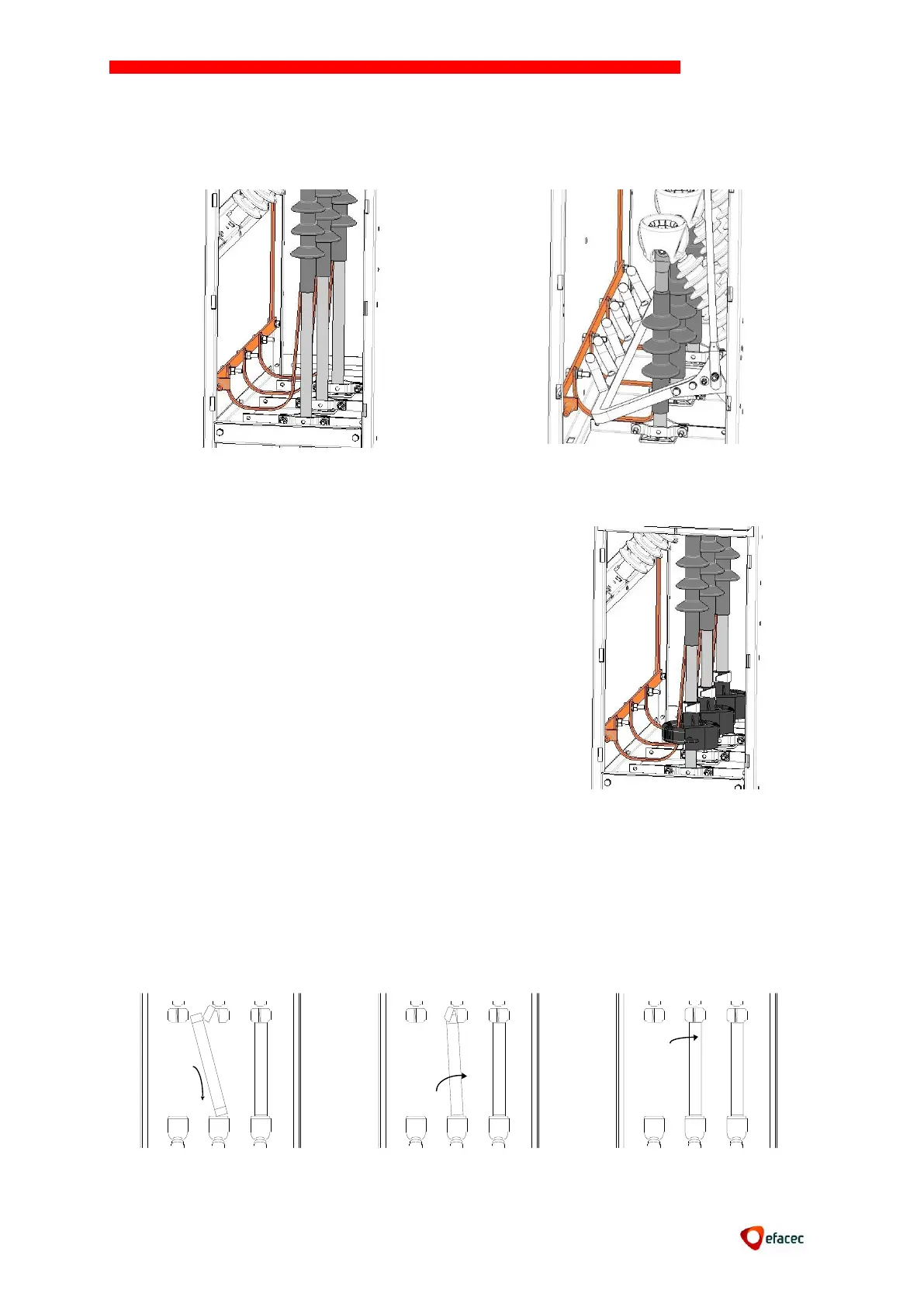 Connect the three cable earth plaits to the earth main bar with M8x30H screws and