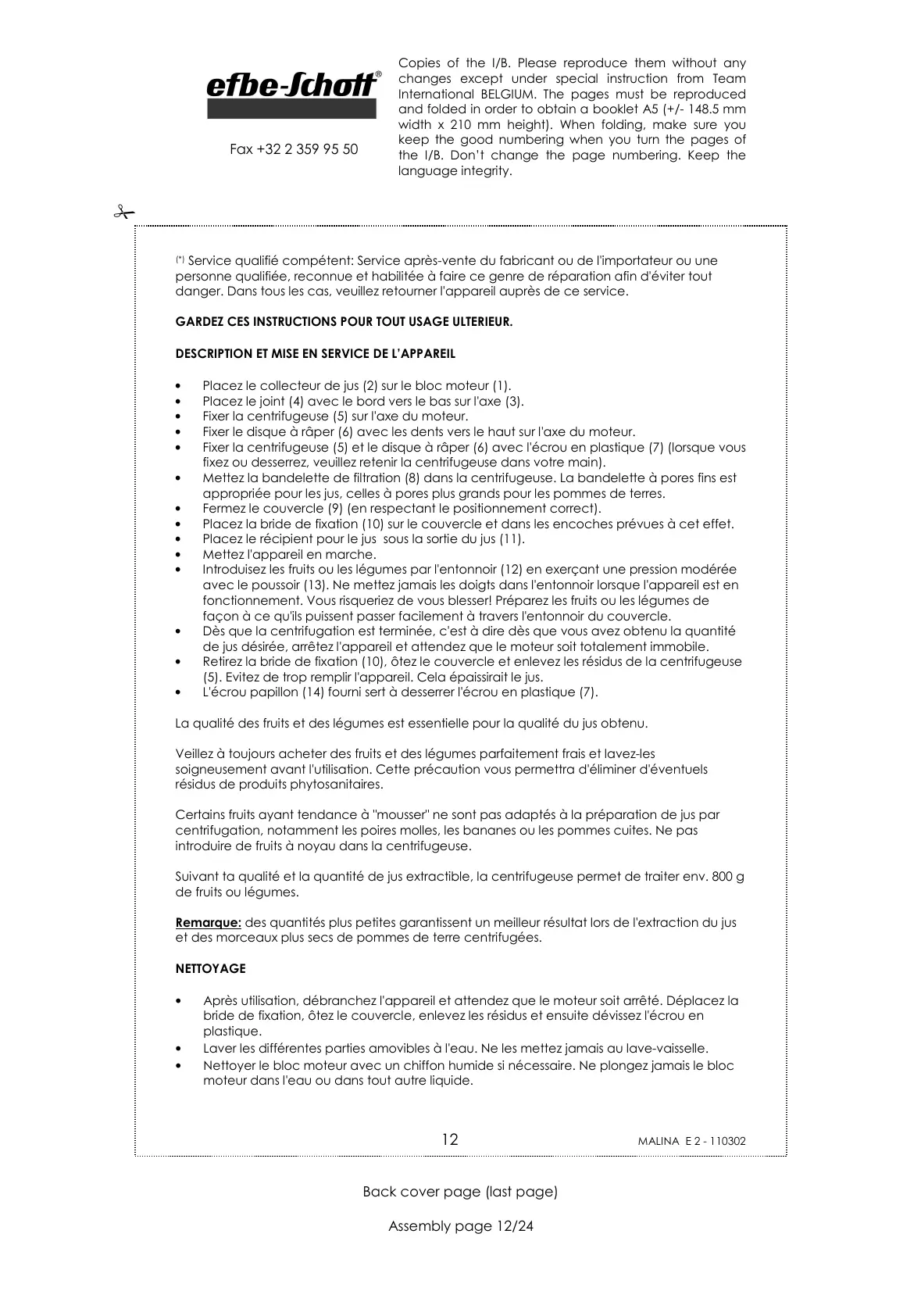 Retirez la bride de fixation (10), ôtez le couvercle et enlevez les résidus de la centrifugeuse