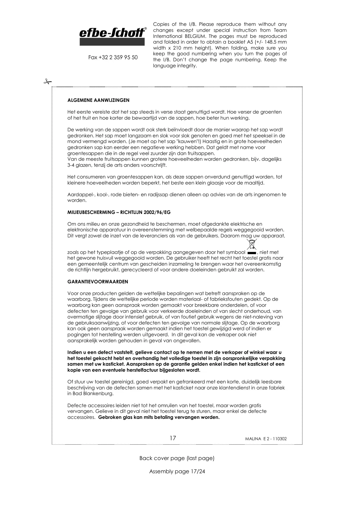 waarborg. Tijdens de wettelijke periode worden materiaal- of fabrieksfouten gedekt. Op de