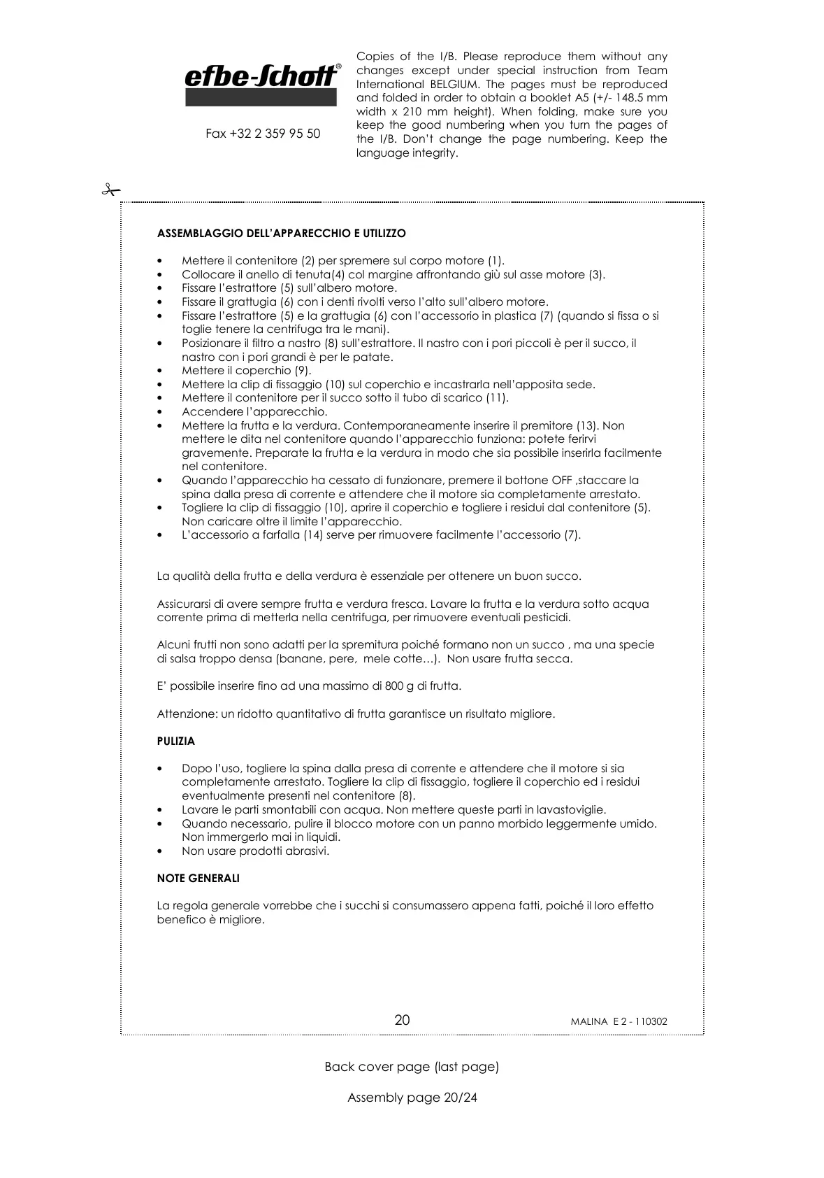 Posizionare il filtro a nastro (8) sullestrattore. Il nastro con i pori piccoli è per il succo, il