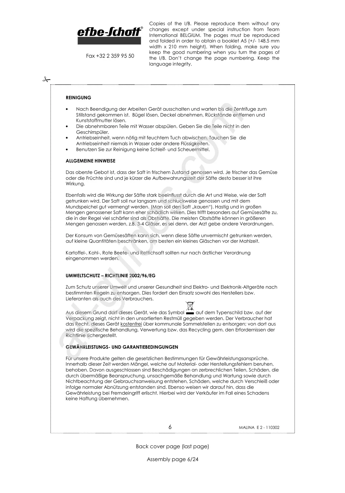 getrunken wird. Der Saft soll nur langsam und schluckweise genossen und mit dem