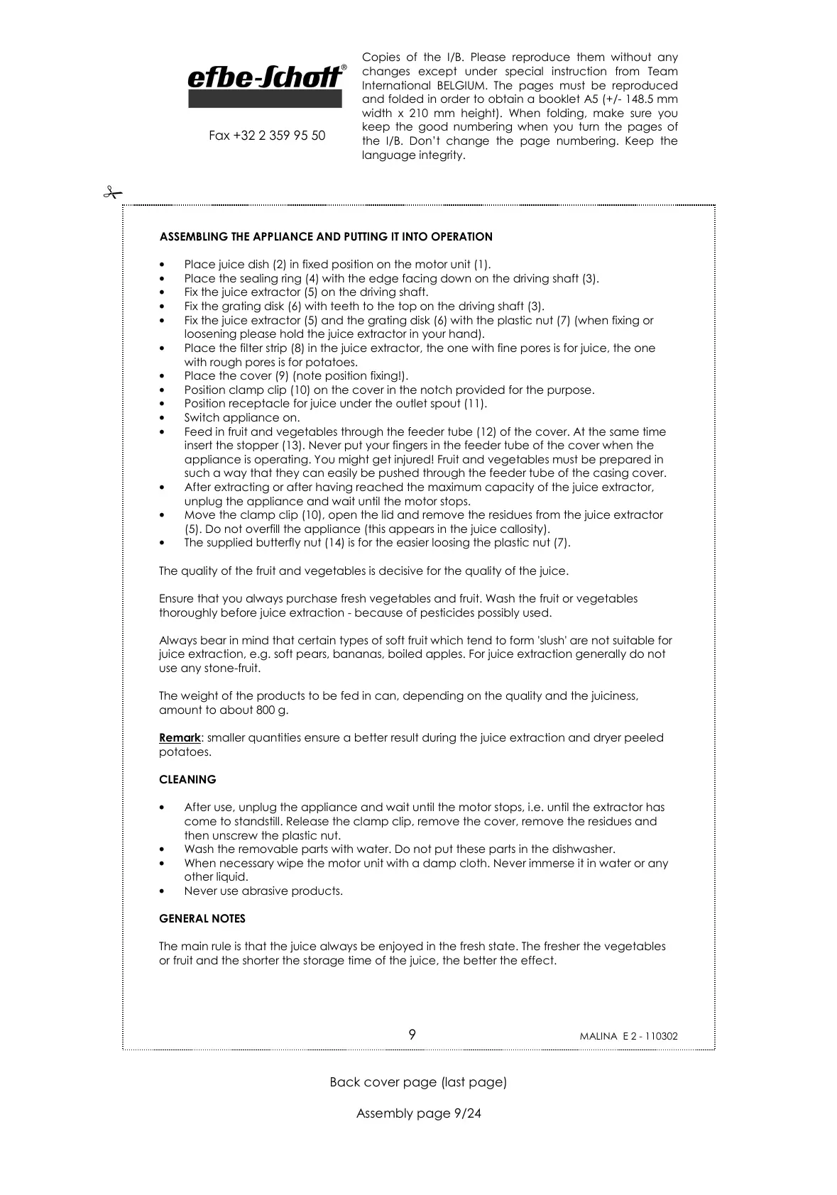 (5). Do not overfill the appliance (this appears in the juice callosity).