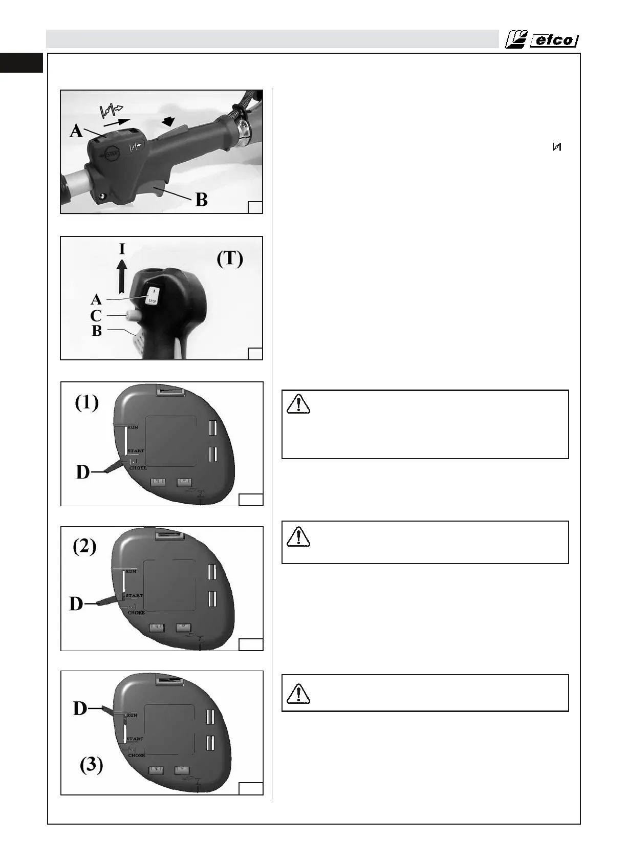 • Ponga la palanca del arrancador (D) en la posición de