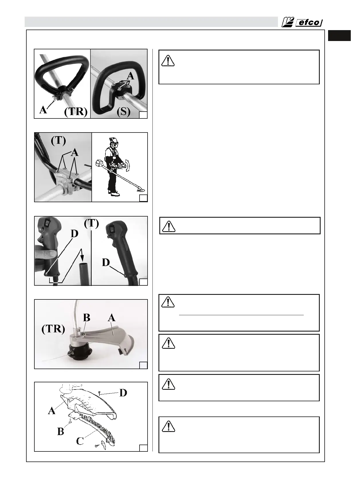 NOTE (S) - (T): assemble the trimmer guard (C, Fig.20) when