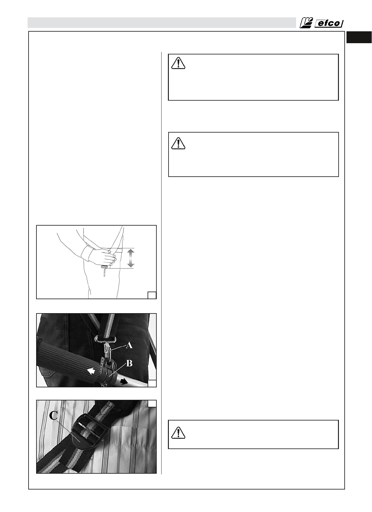 Correct adjustment of the harness permits the brush cutter to be