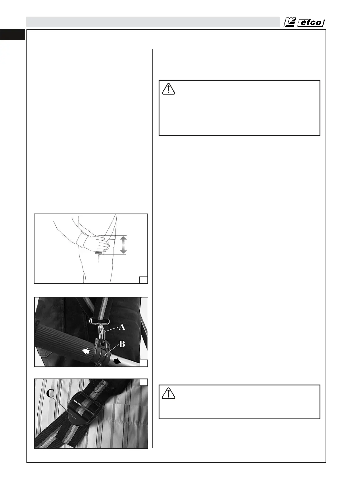 - Enganche la desbrozadora al correaje mediante el gancho (A,