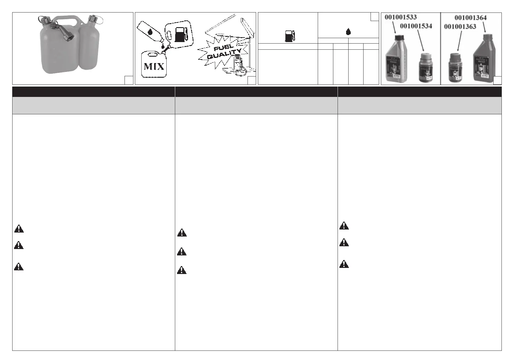 NOTA: l’olio per motori a due tempi contiene stabilizzatore per carburante