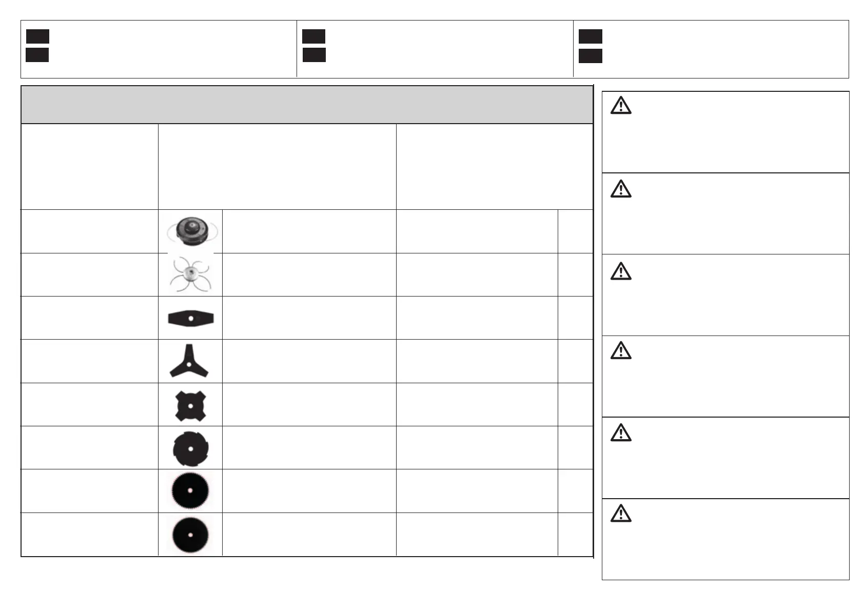 Dispositivi di taglio consigliati - Recommended cutting attachments - Outils de coupe