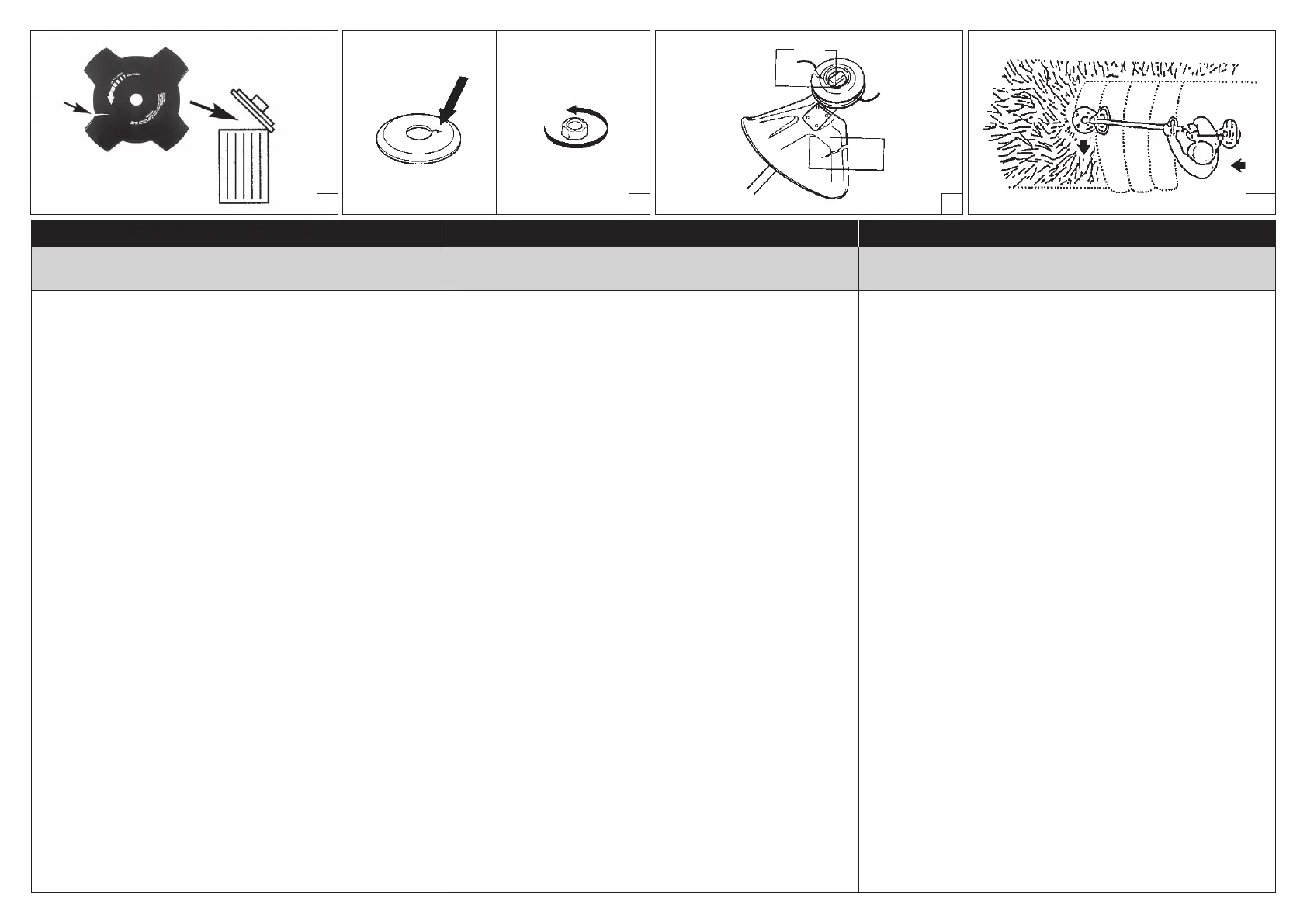 • Grass blades and grass cutters must not be used on woody