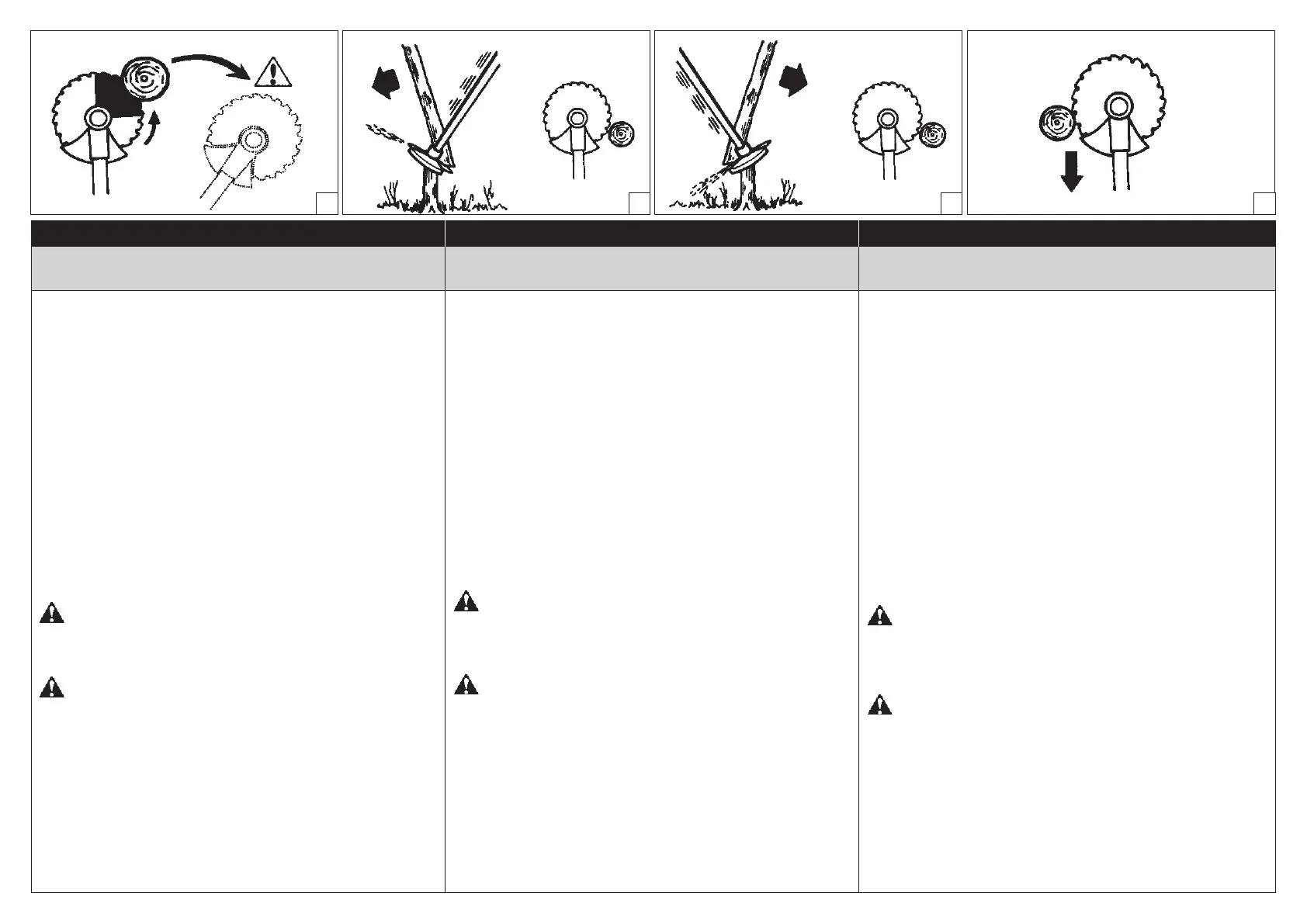 • I fusti sottili e gli sterpi vengono falciati. Procedere con un movimento alternato,