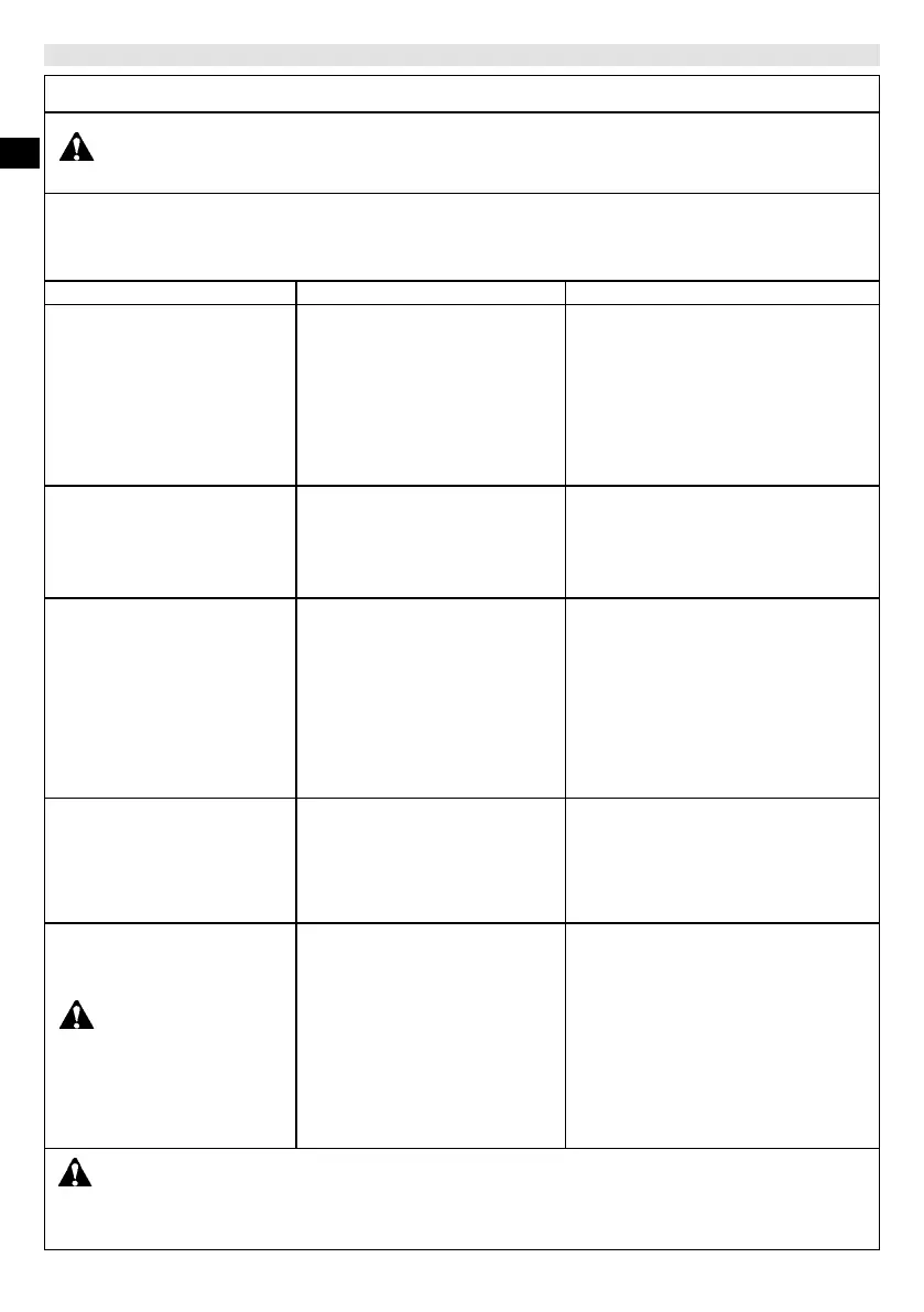 Authorised Service Centre. If a problem occurs that is not listed in this table, consult an Authorised