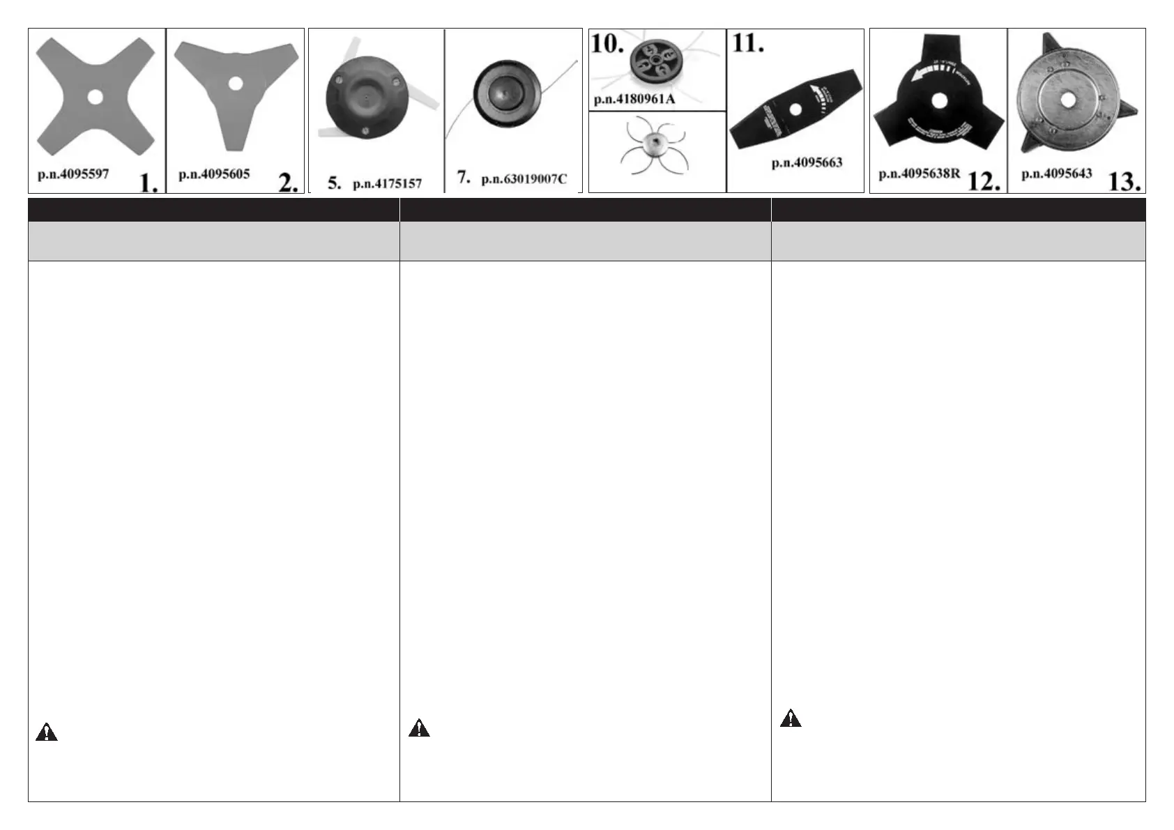11. Lames pour l’herbe Ø 12”/305 mm, épaisseur