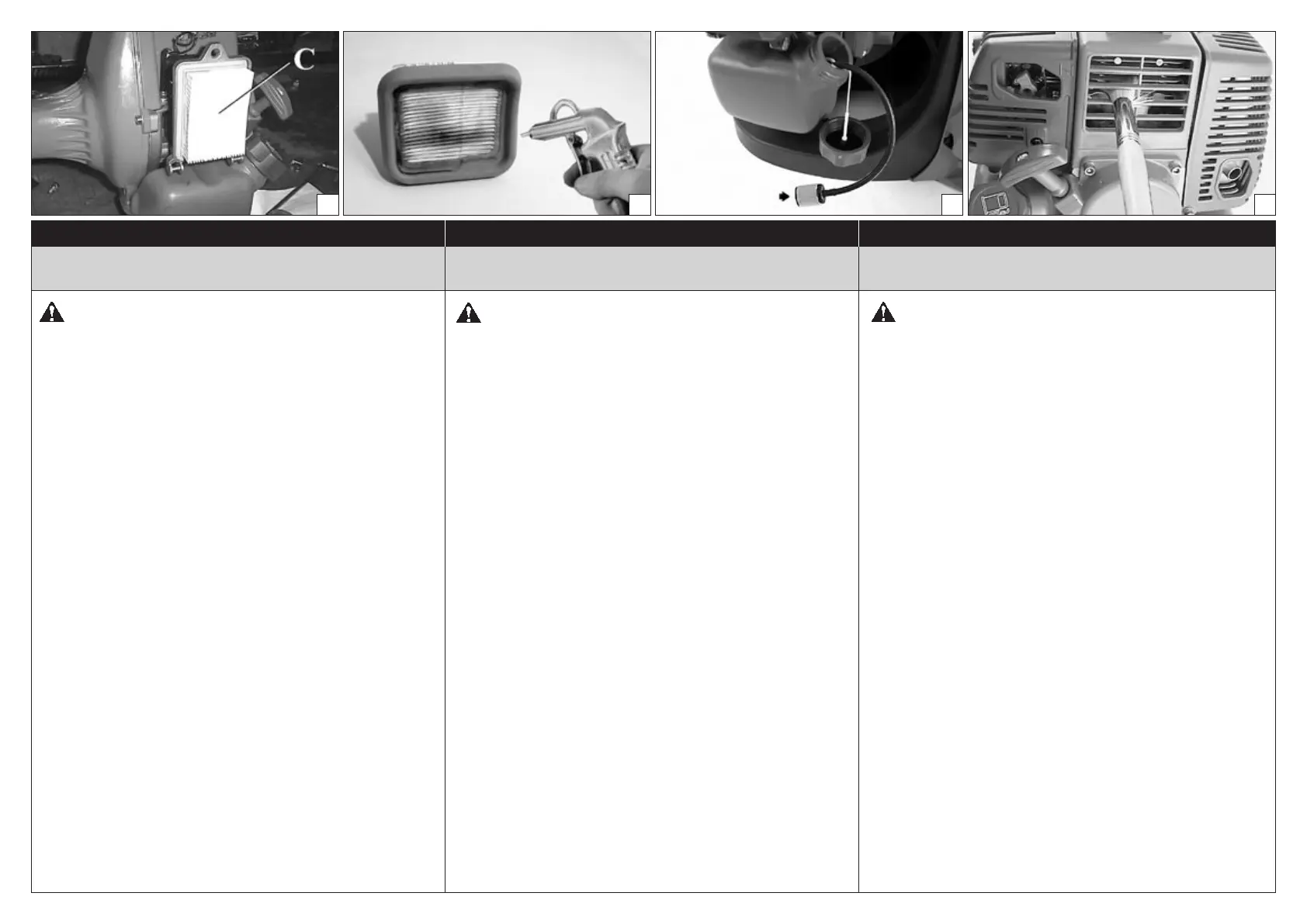 Ogni 8-10 ore di lavoro, togliere il coperchio, pulire il ltro (C,