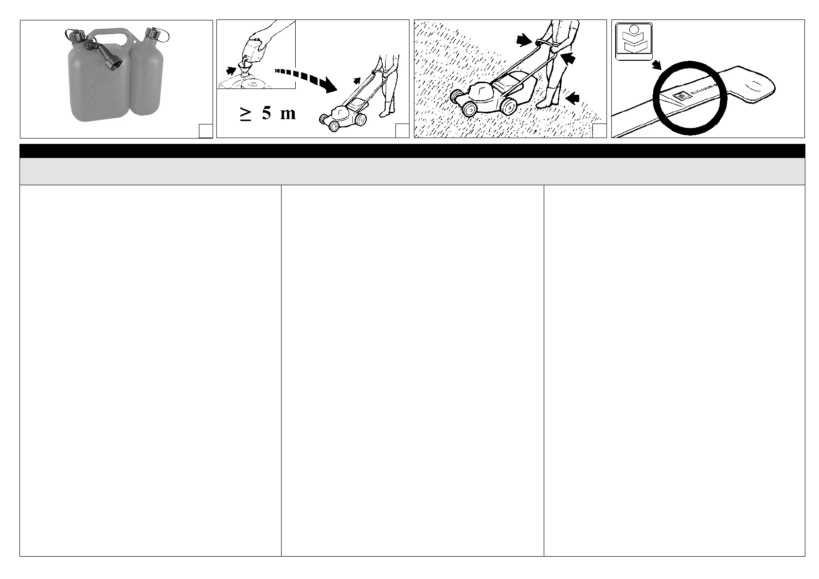 4 - Wenn der Motor läuft, Hände und Füße vom Mähwerkzeug
