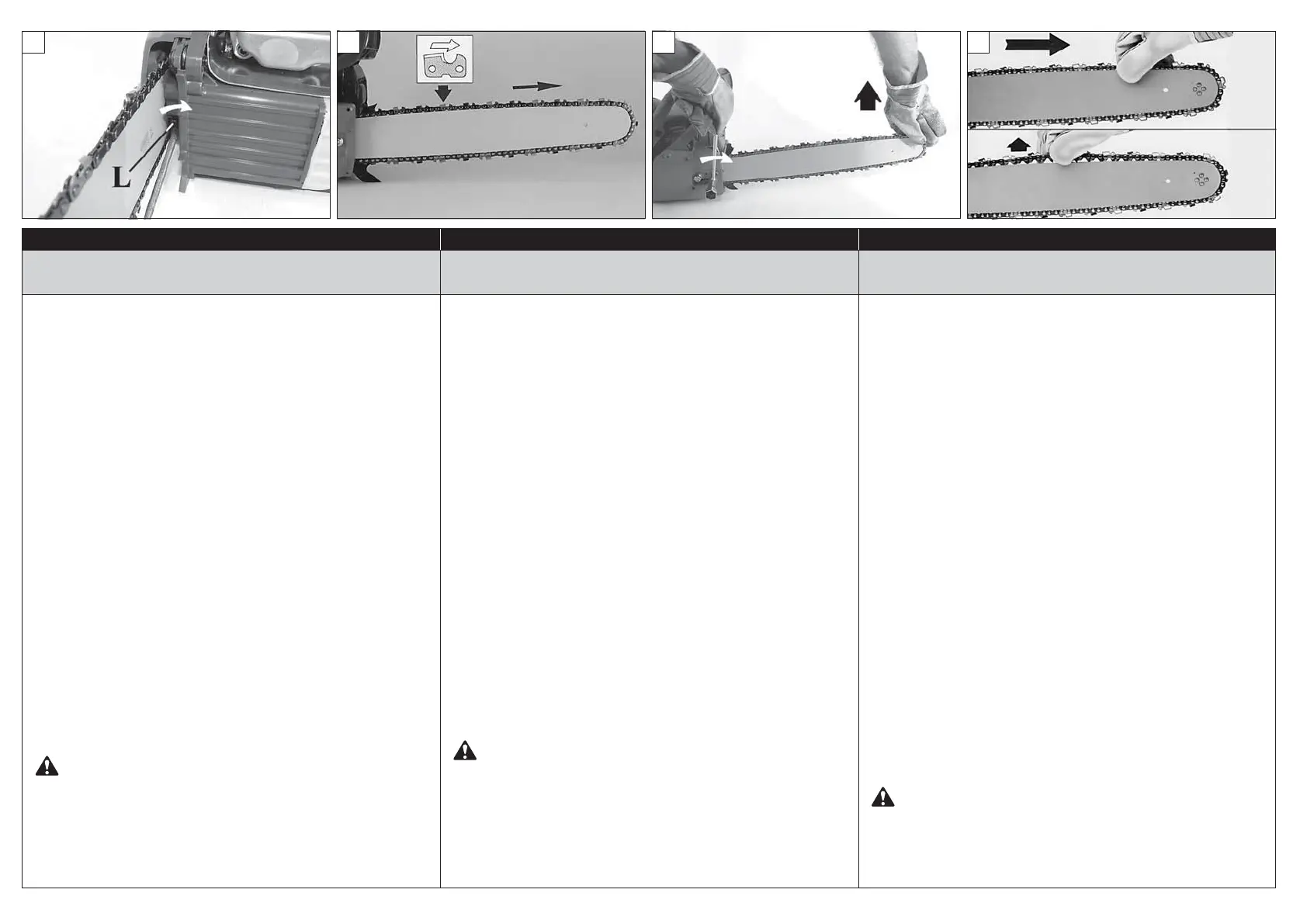 - Mit Hilfe der Spannschraube (L, Abb. 5) die Kette spannen.