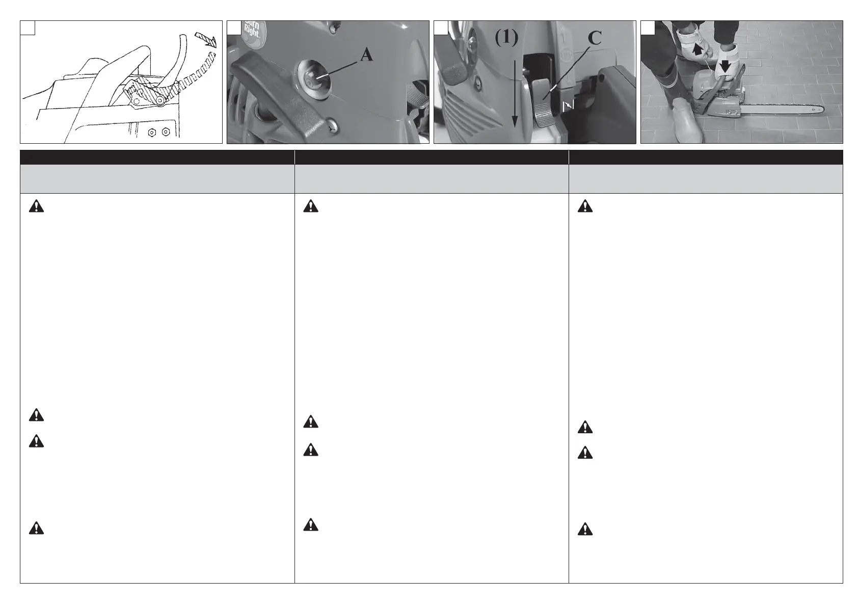 d’avviamento. Una volta avviato il motore disattivare il freno catena