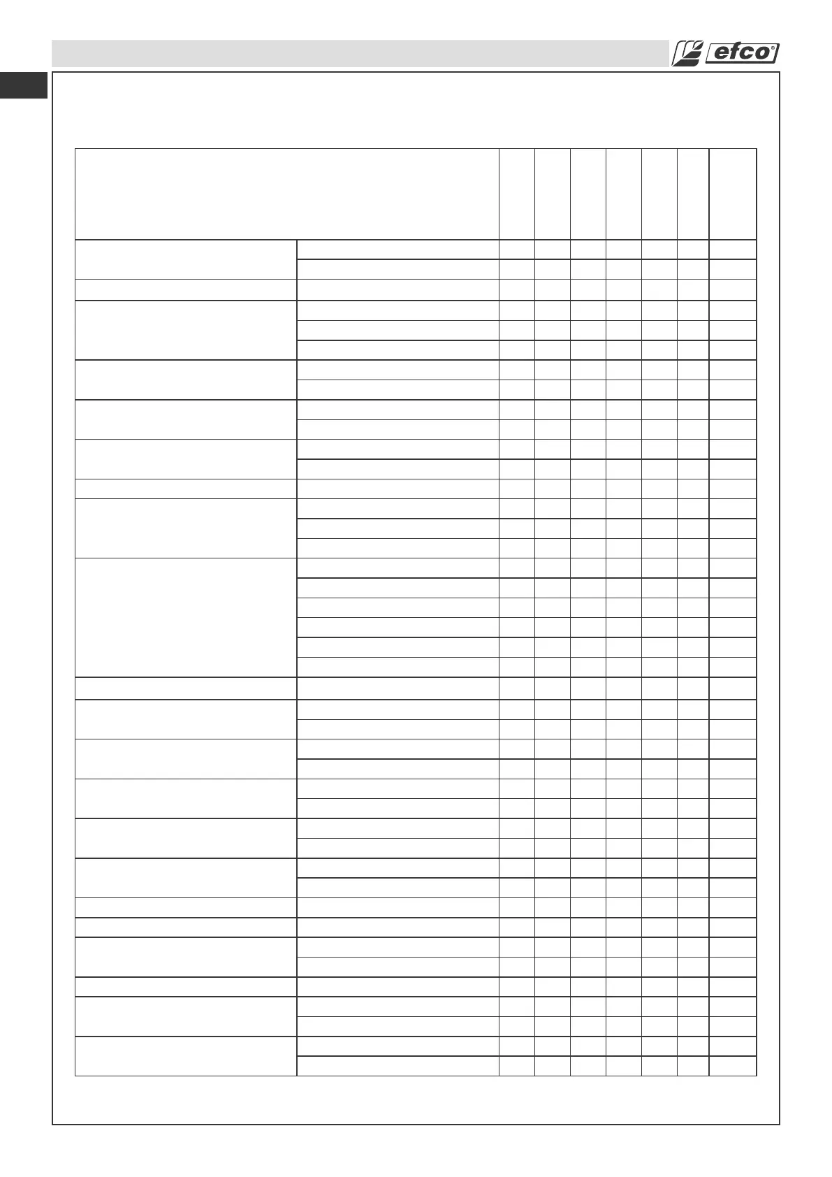 Tabla de mantenimiento