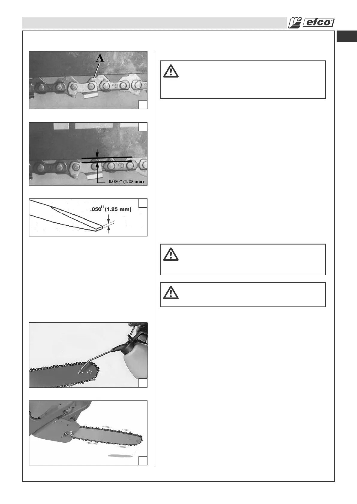 Tension de la chaîne. Ne touchez jamais le sol avec la chaîne.