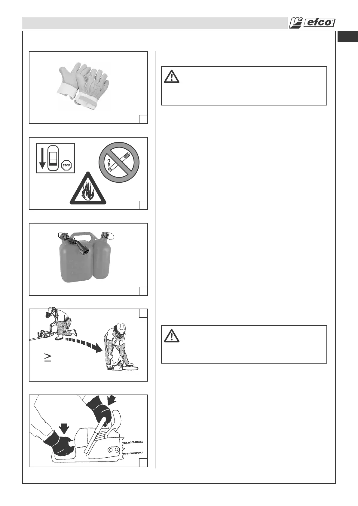 • Transporte siempre la motosierra con el motor parado y el