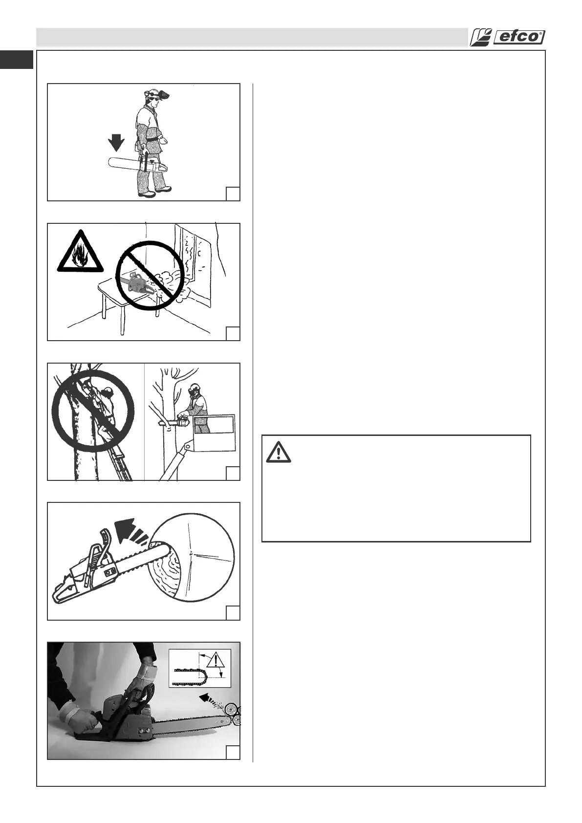 • No utilice la motosierra subido a una escalera o a un árbol.