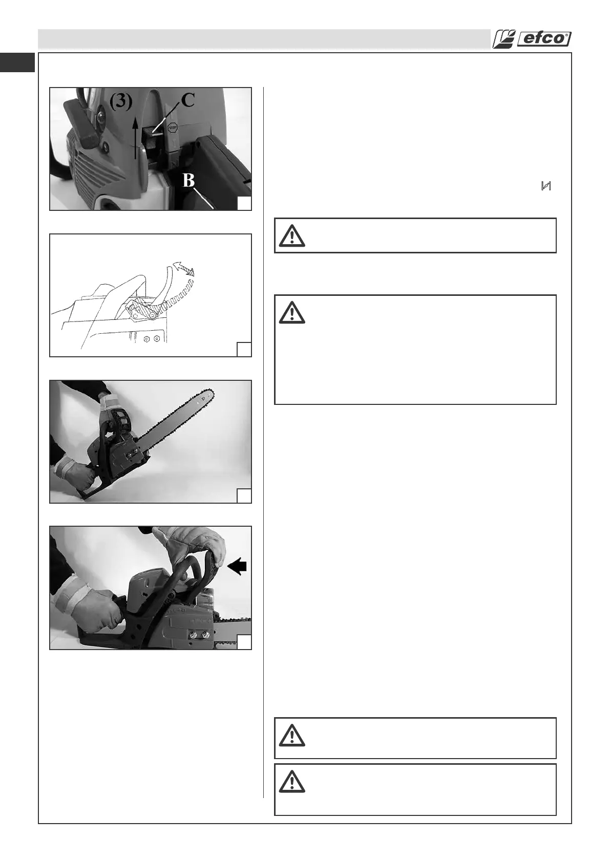 arrancador (C) en la posición más alta (3). No deje la motosierra