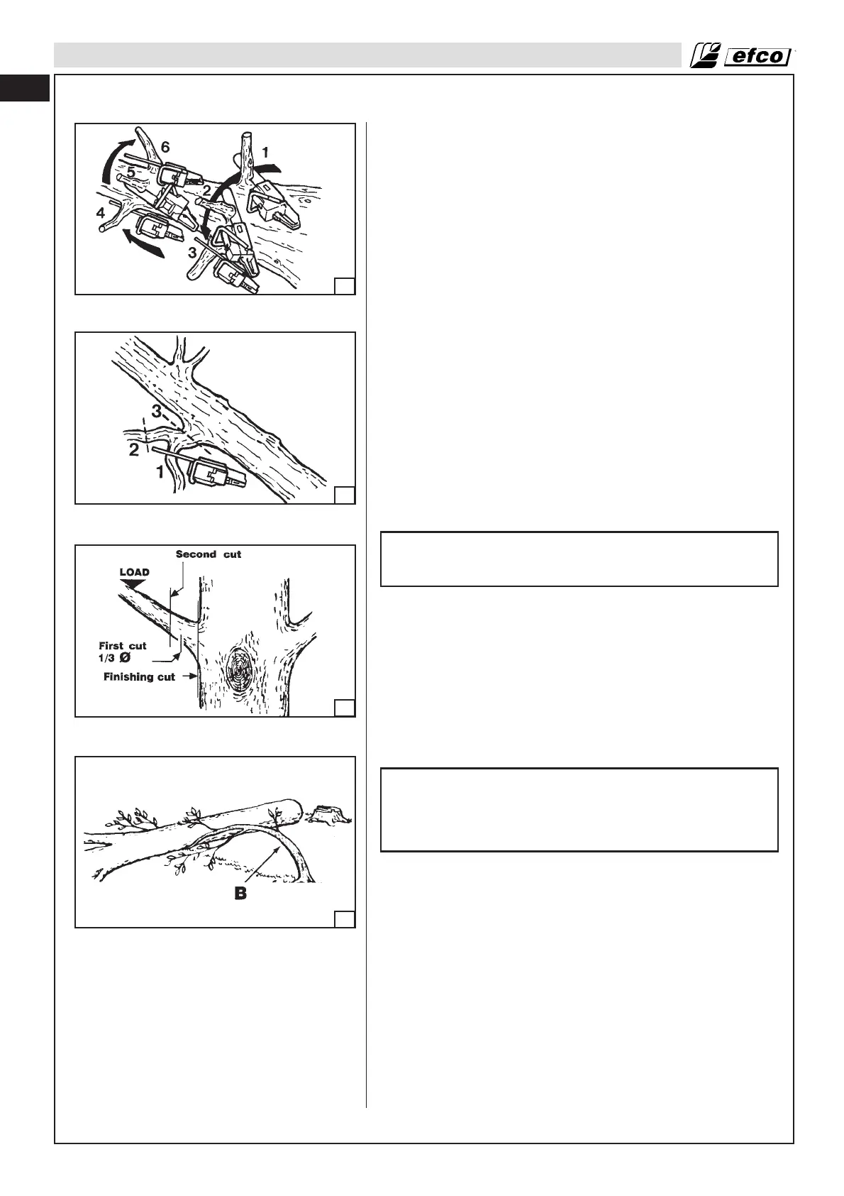 • Always use an overcut to cut small and freely hanging limbs.