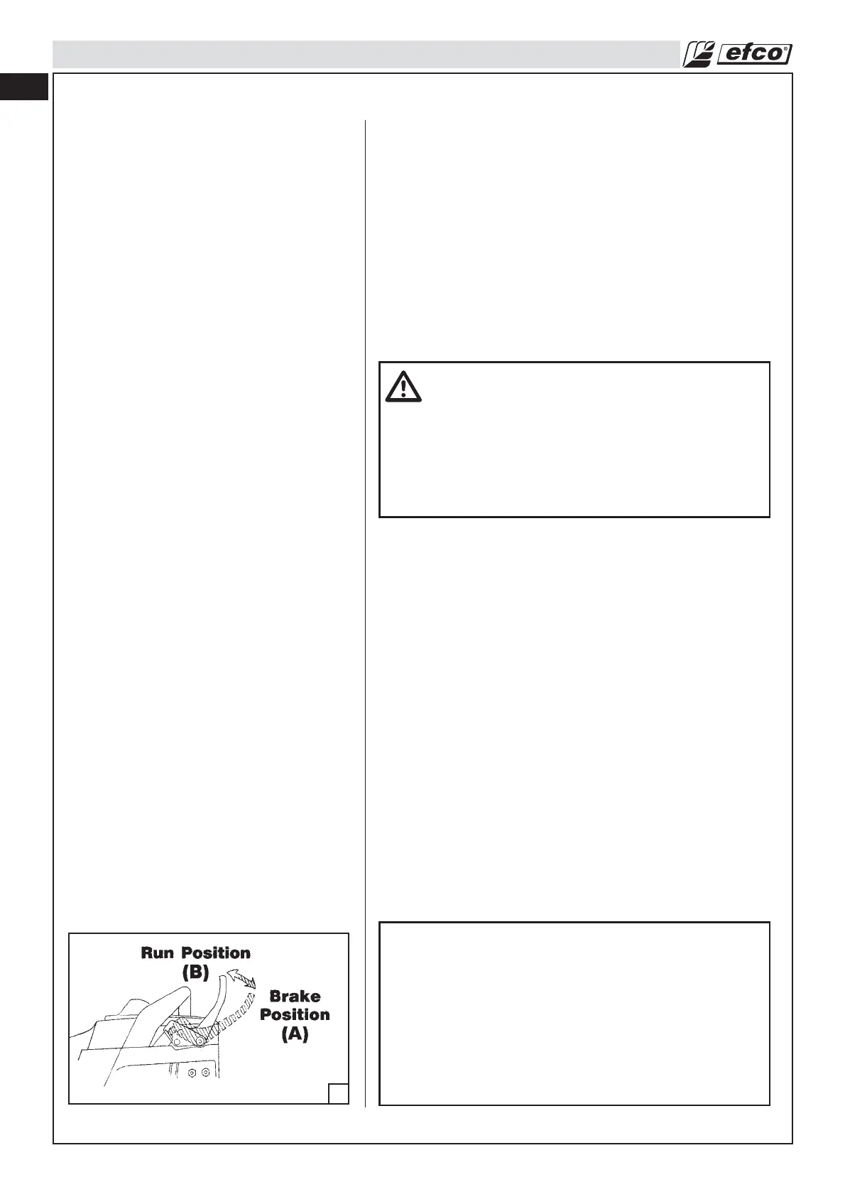 Le frein de chaîne doit être nettoyé et testé quotidiennement.