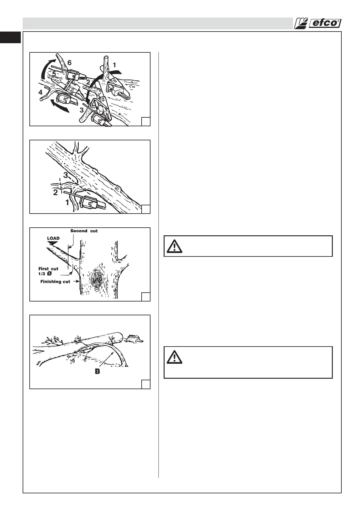 • Always use an overcut to cut small and freely hanging limbs.