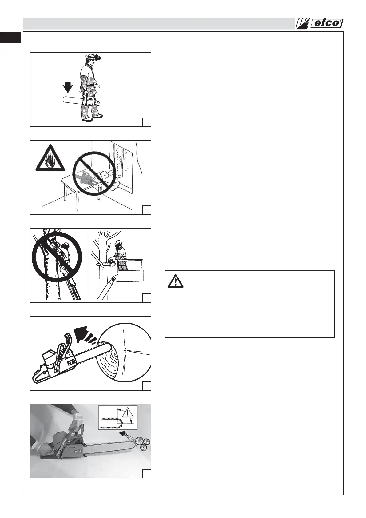 • No utilice la motosierra subido a una escalera o a un árbol.