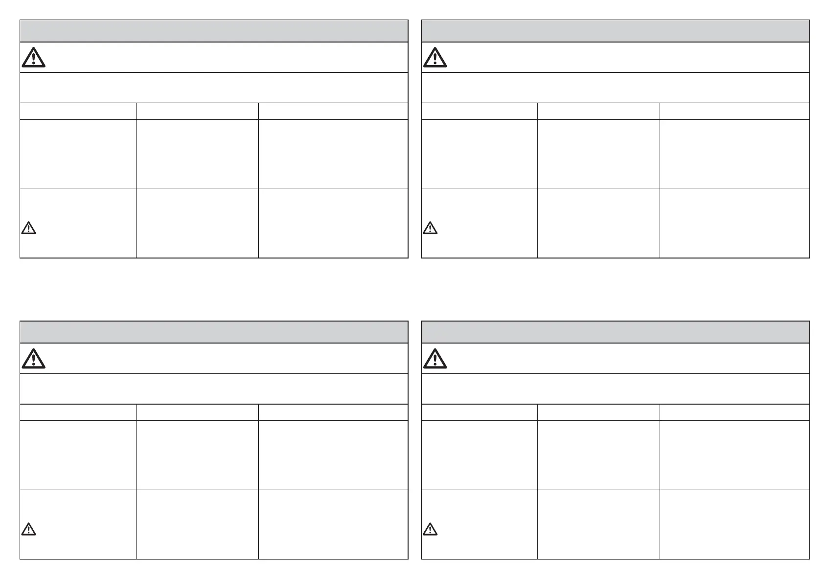 ACHTUNG: halten Sie stets das Gerät an und ziehen Sie vor den in folgender Tabelle