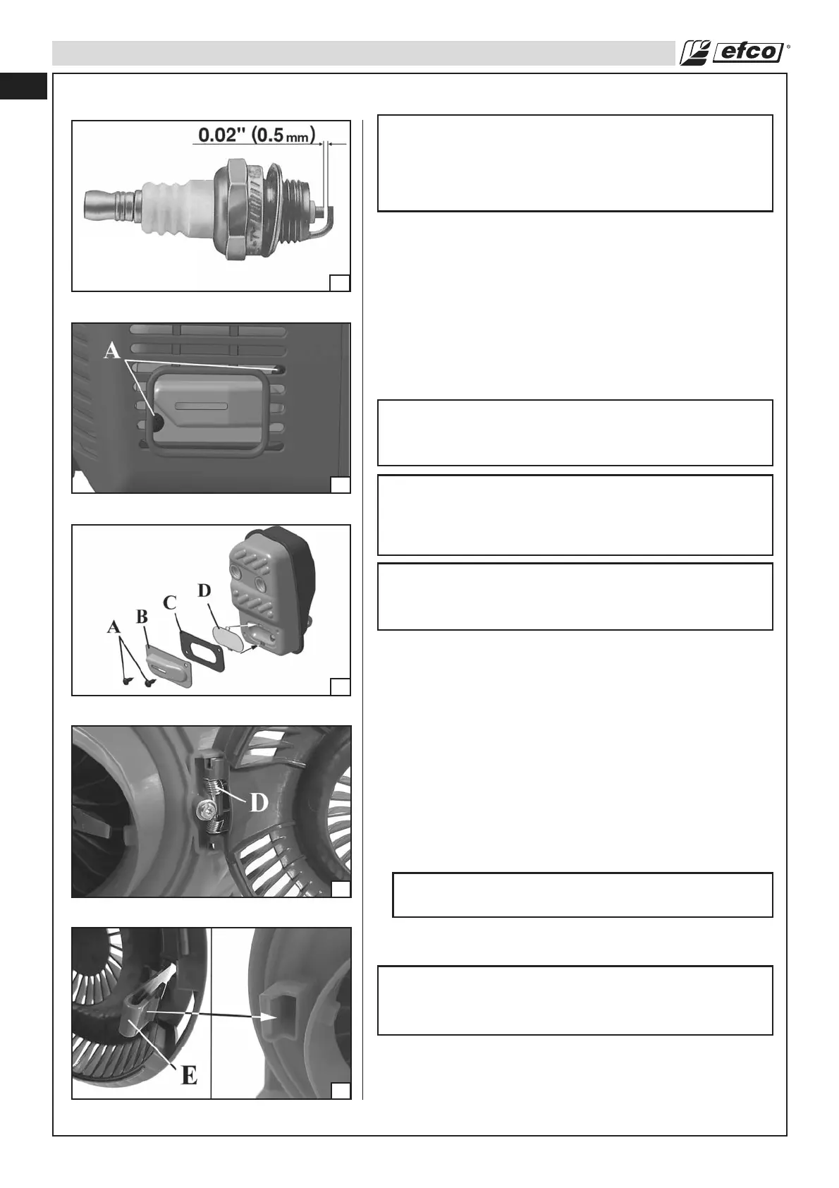 - check the spark arrester screen periodically, and replace it if holed, bent