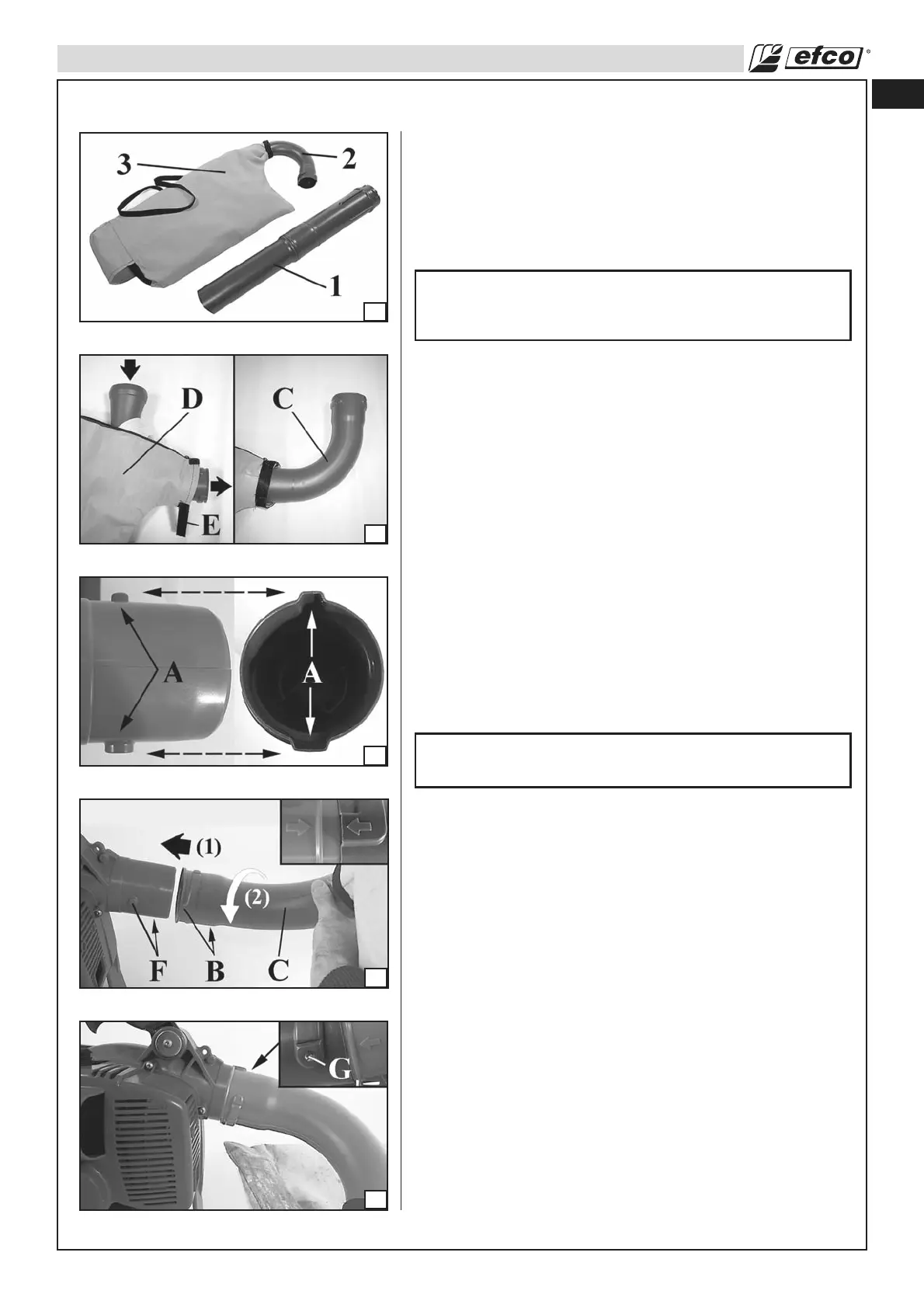 - Insert the intake tube (C, Fig. 58) into the bag (D) up to the