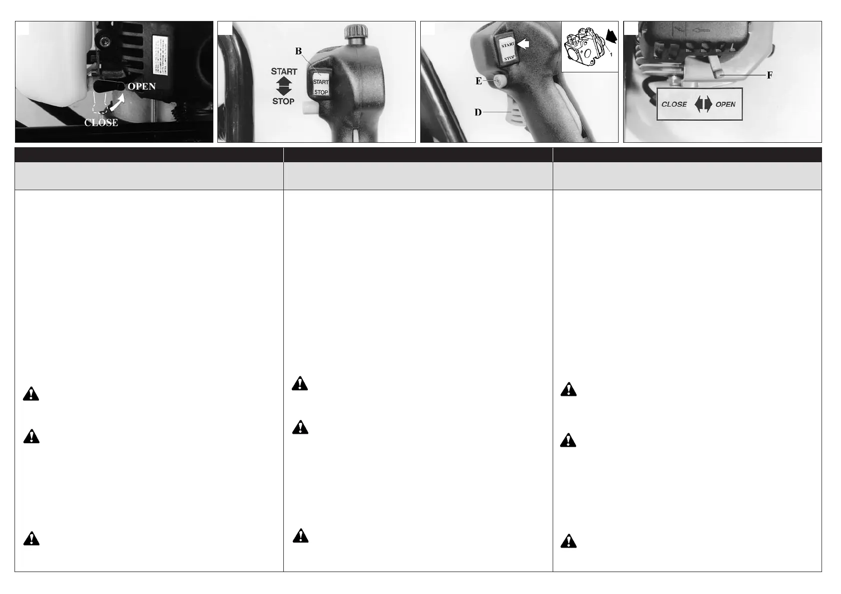 sante (E), rilasciare la leva (D). Portare la leva starter (F,