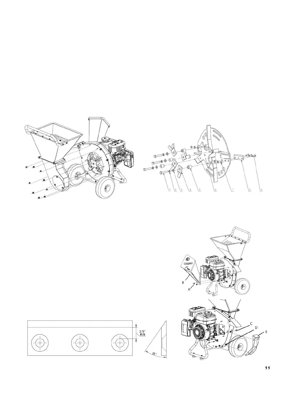 Reinstall the chipper knife and tighten the bolts, secure removable