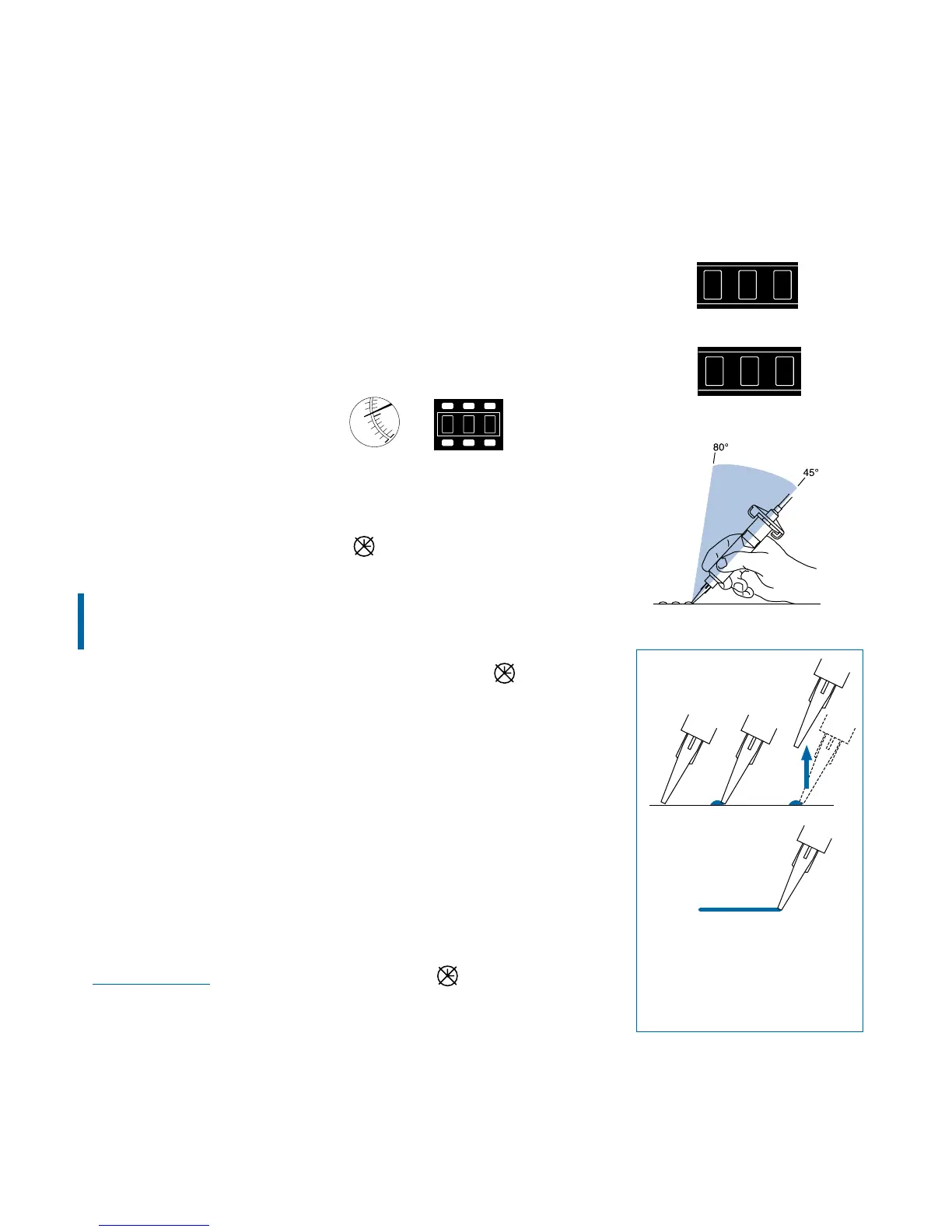 the time indication. With the tip in contact with the test sheet, press