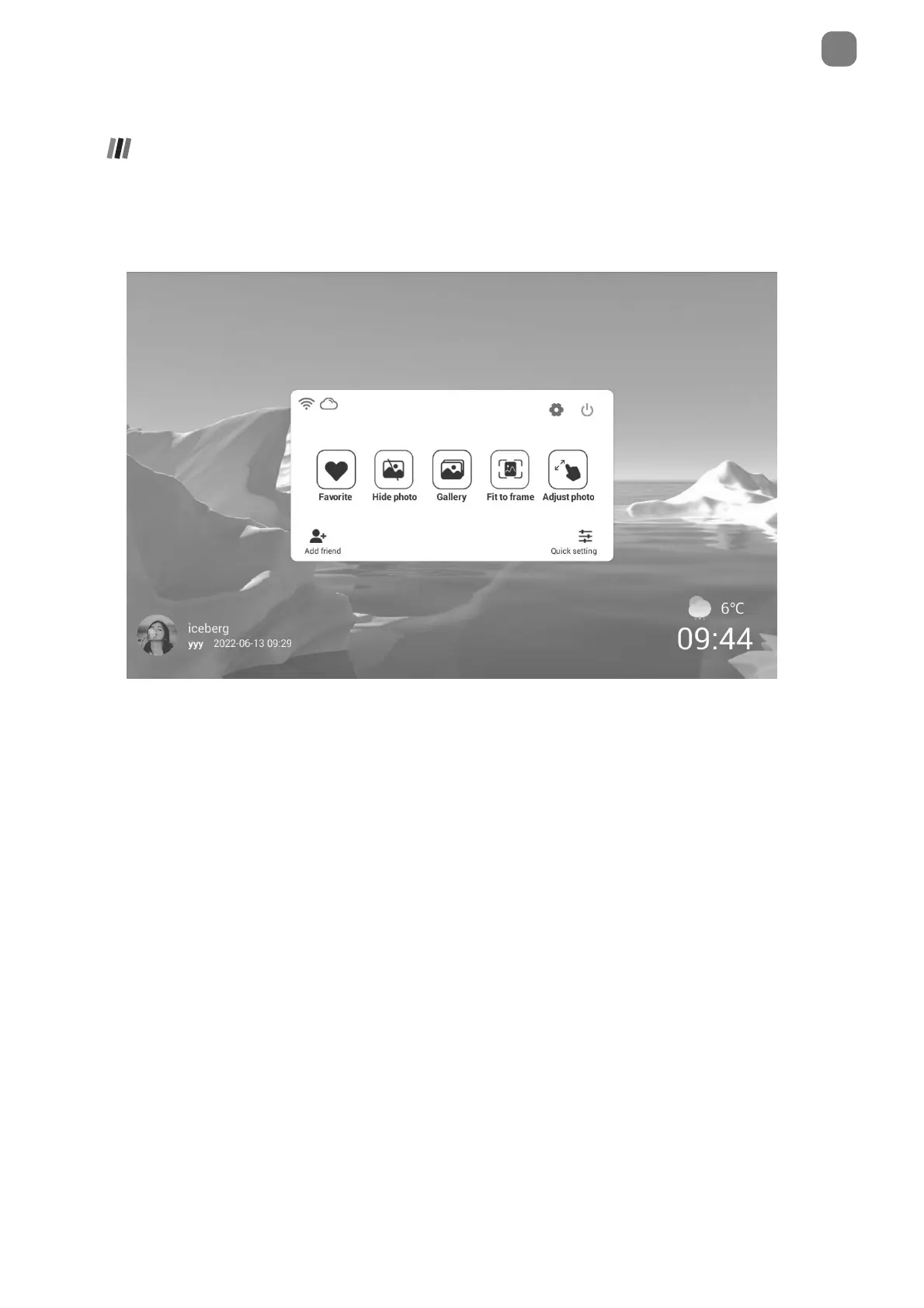 adjust/hide the current photo and to access the gallery or other settings.