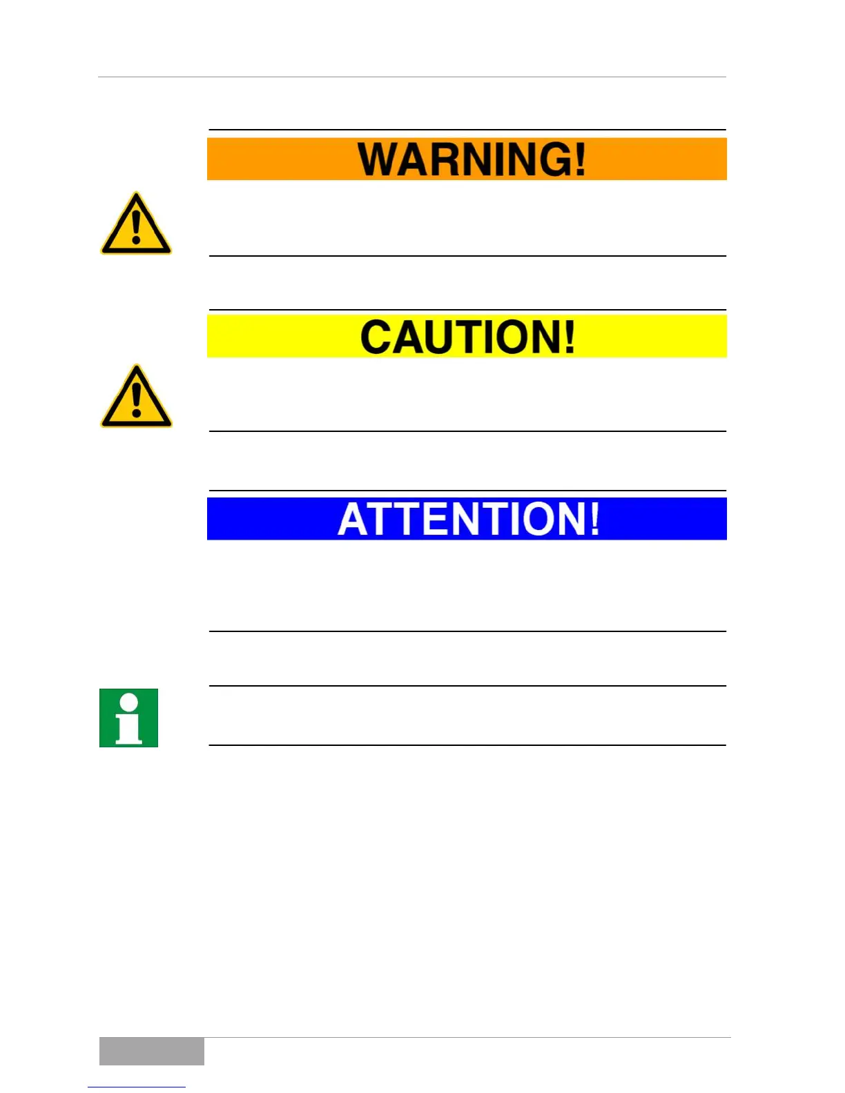 Text that is marked with CAUTION! provides a warning about hazards. If