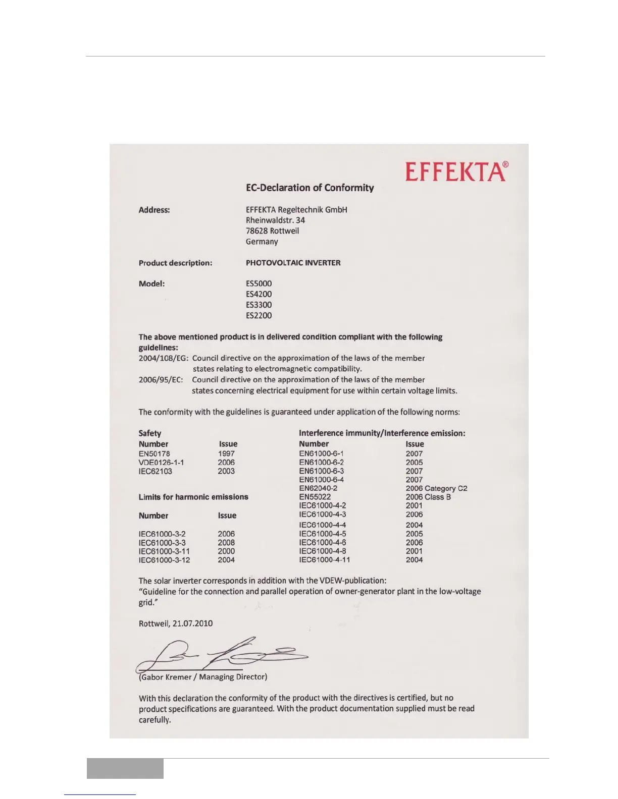 Effekta ES3300 - Declaration of Conformity
