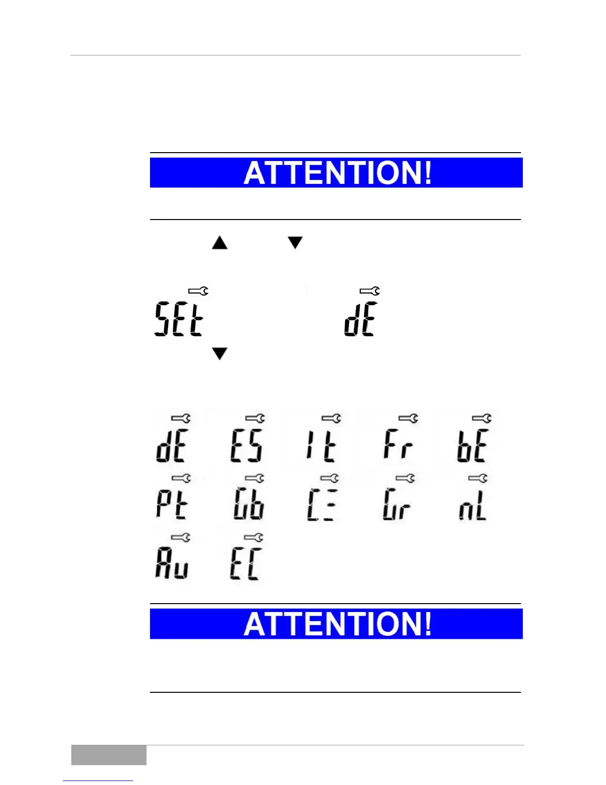 2. Press the key to select the appropriate country settings: