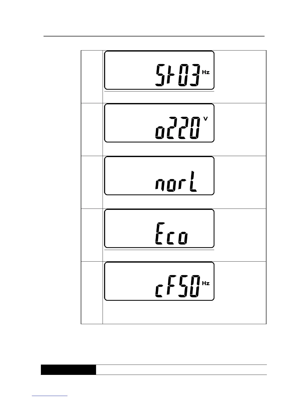 * indicates, that the UPS is in „CVCF 50 Hz Modus“ mode.