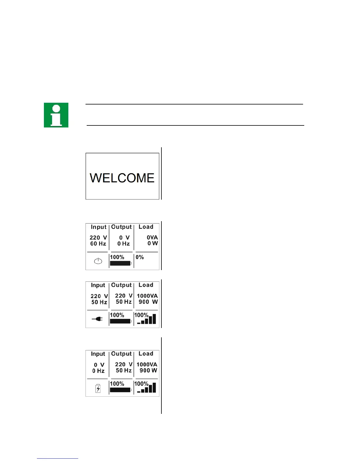 Operating status and standard display on the UPS: