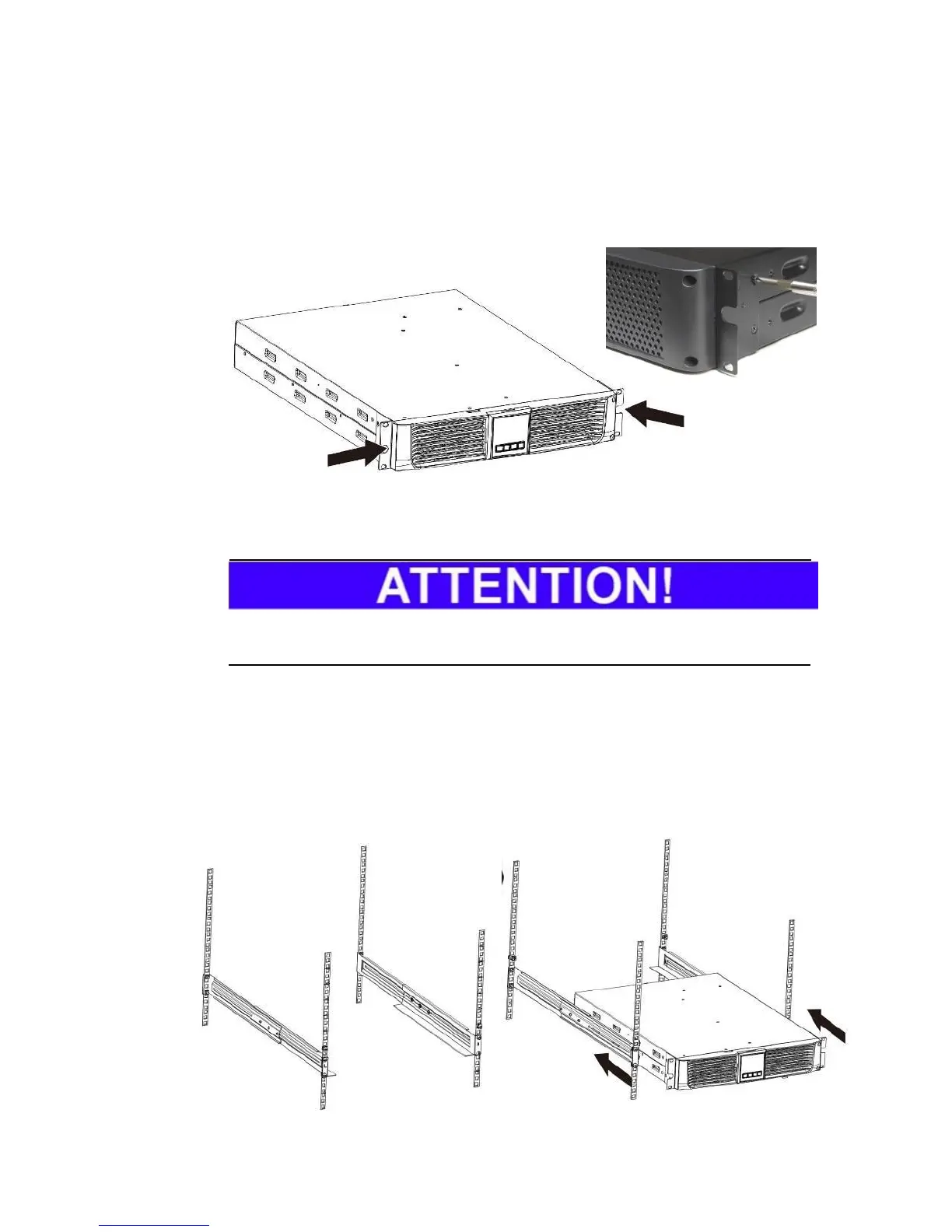 Fig. 5-5 Installation of the guide rails and insertion of the UPS.