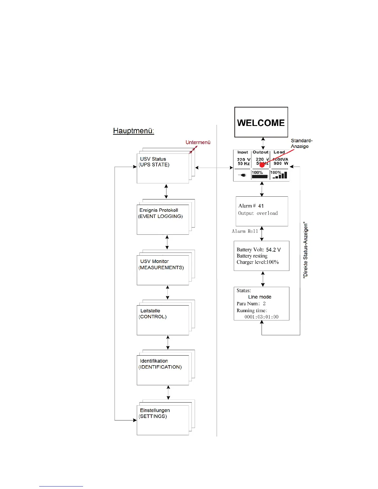 Fig. 6-1 Navigation and main menu for the MKD 6-10 kVA RT series.